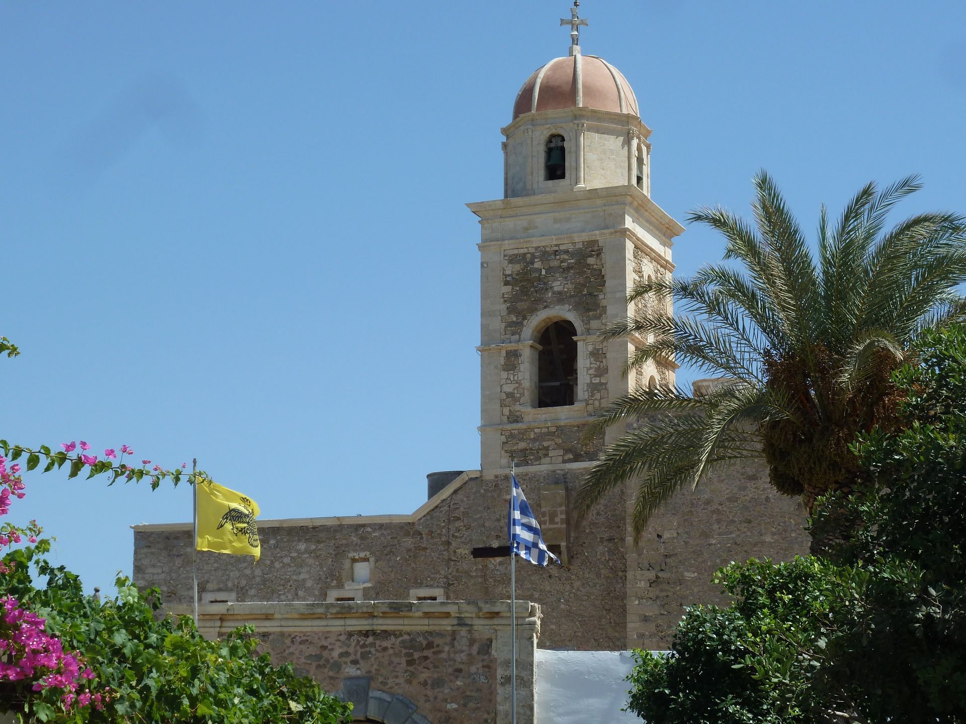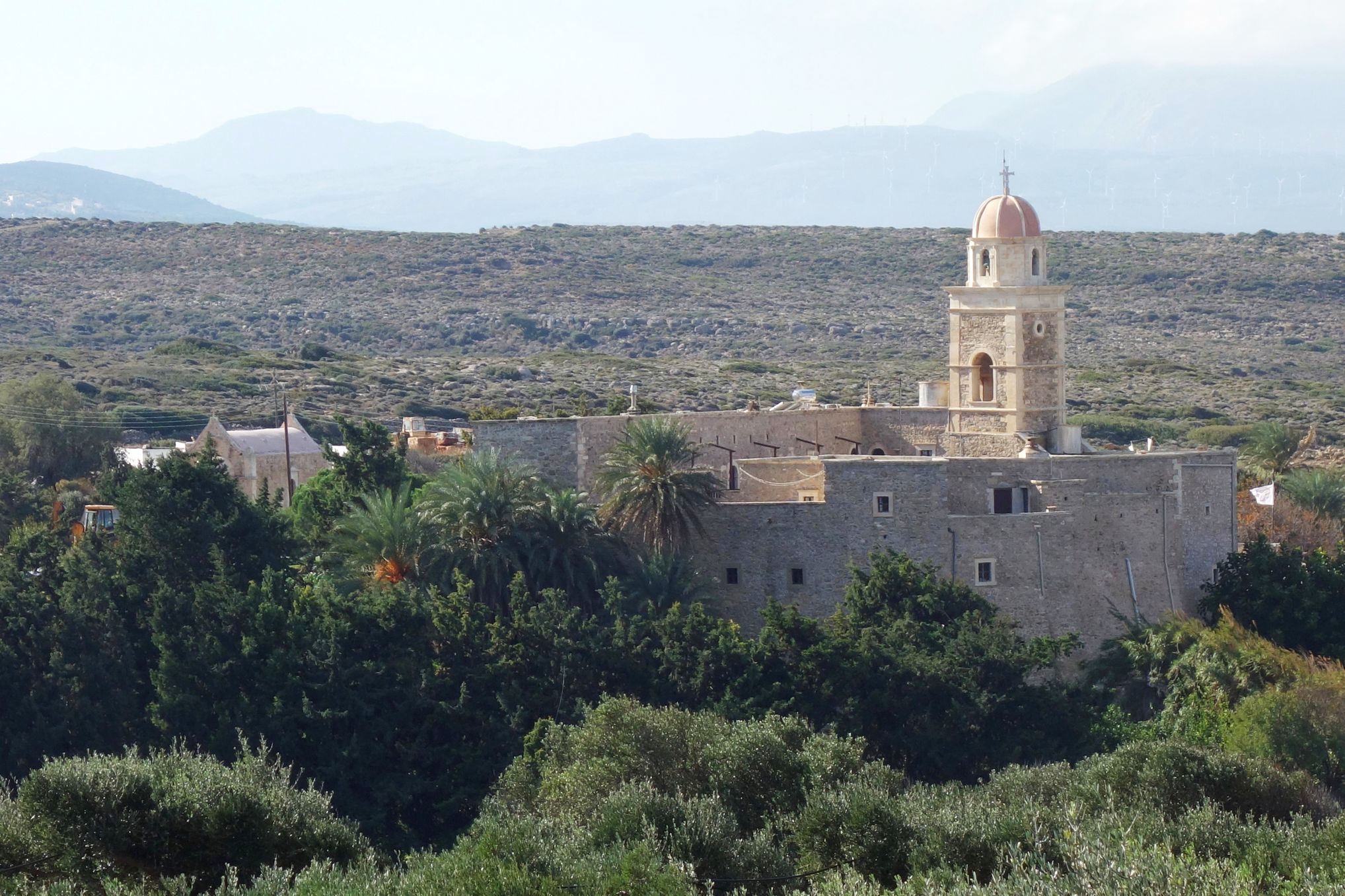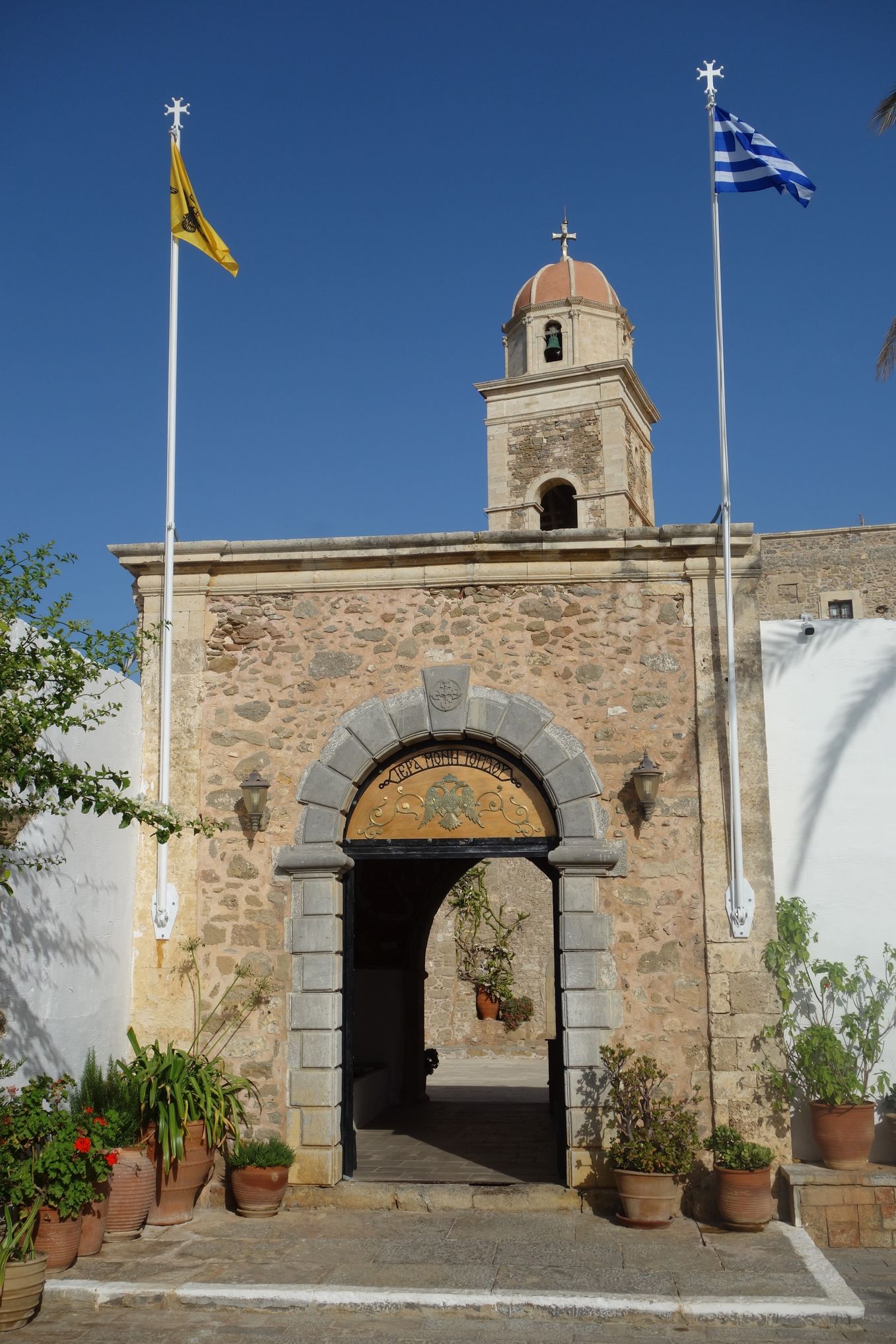 The Toplou monastery (Greek: Μονή Τοπλού) is one of the oldest and most important monasteries in the island of Crete. It was founded in the 15th century and is heavily fortified. The monastery is surrounded by 10 meters high walls and features some exceptional fresco paintings, a collection of Byzantine icons, books and documents, a museum of copperplate engravings and a 33 meters high bell tower.
