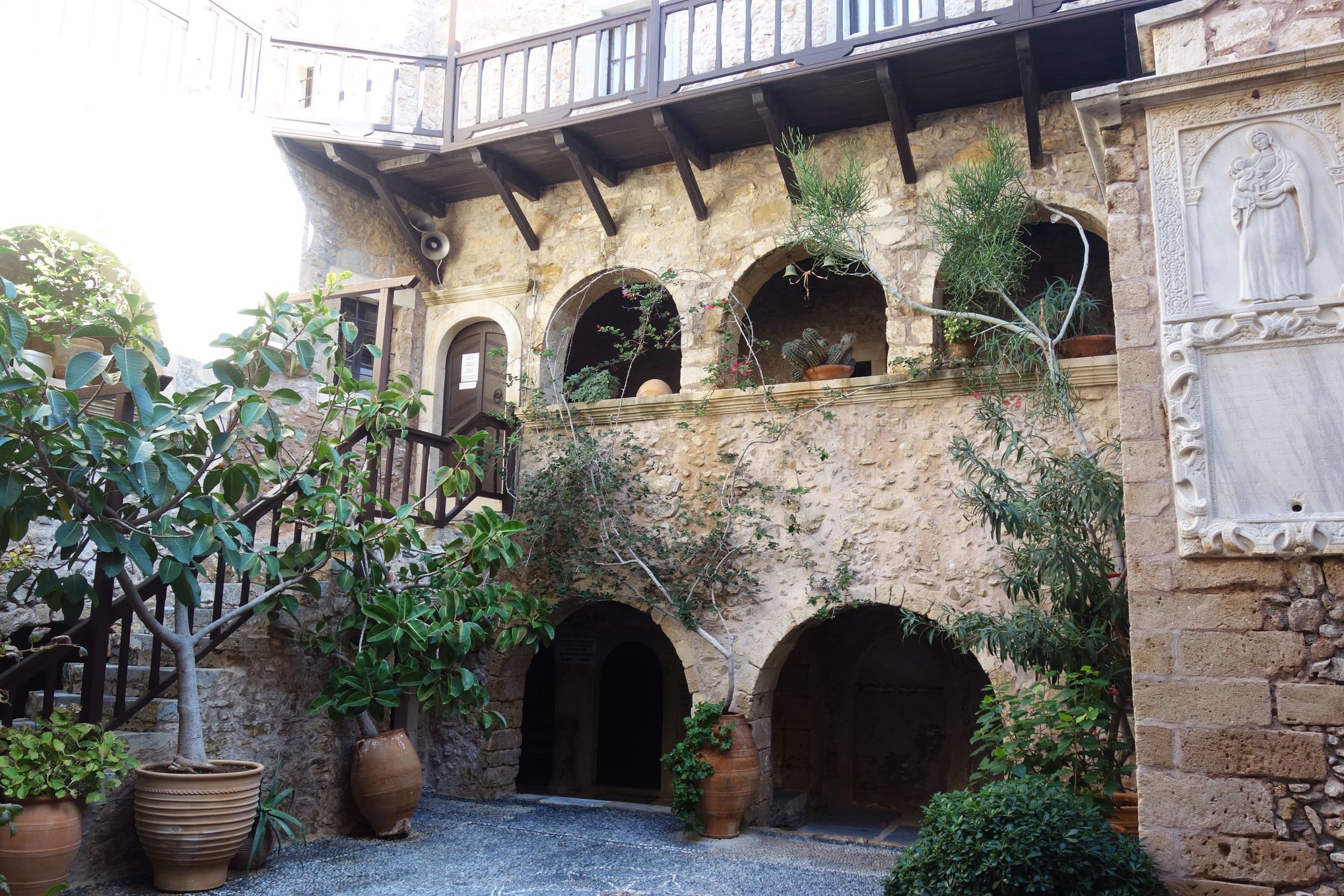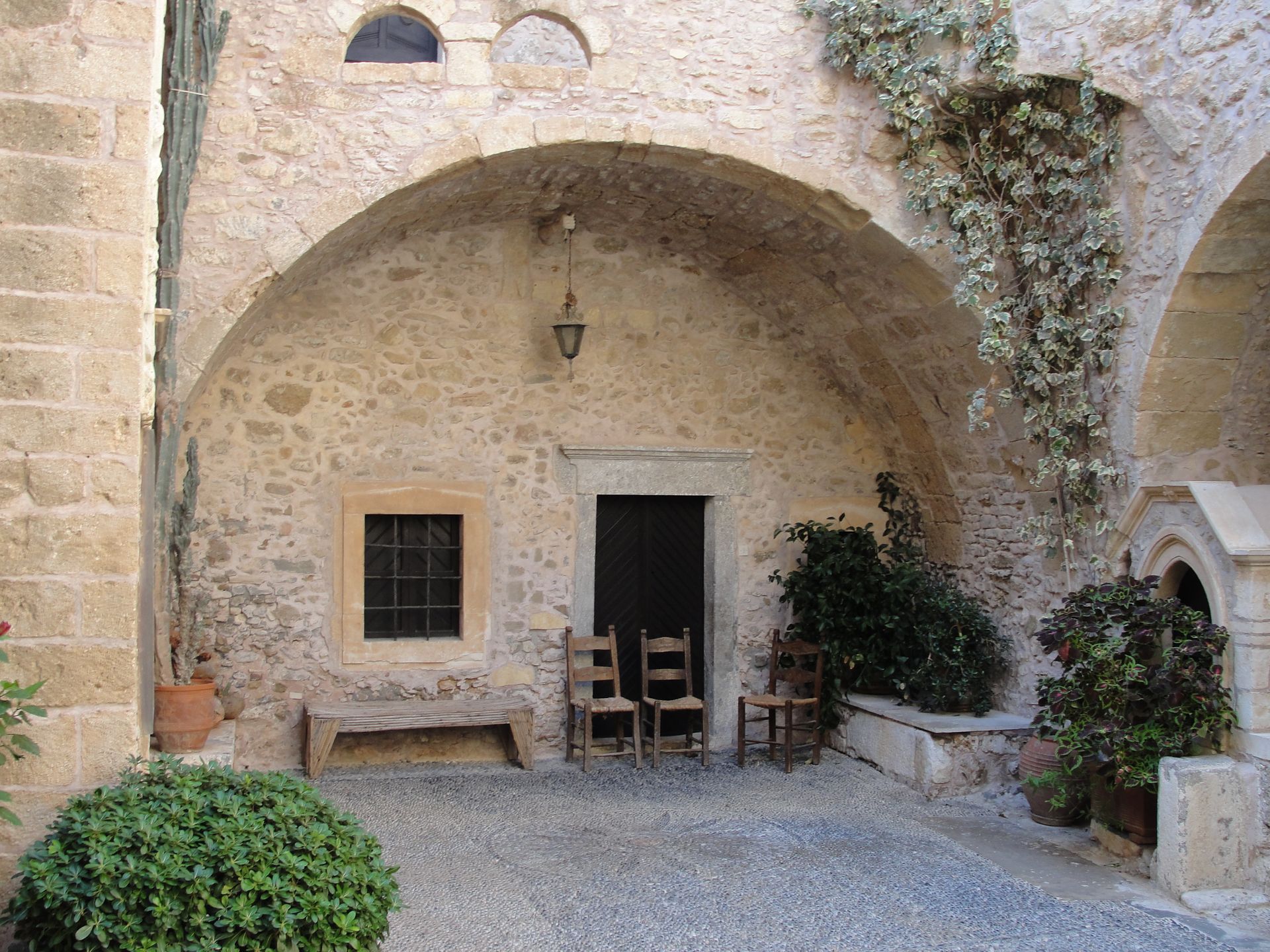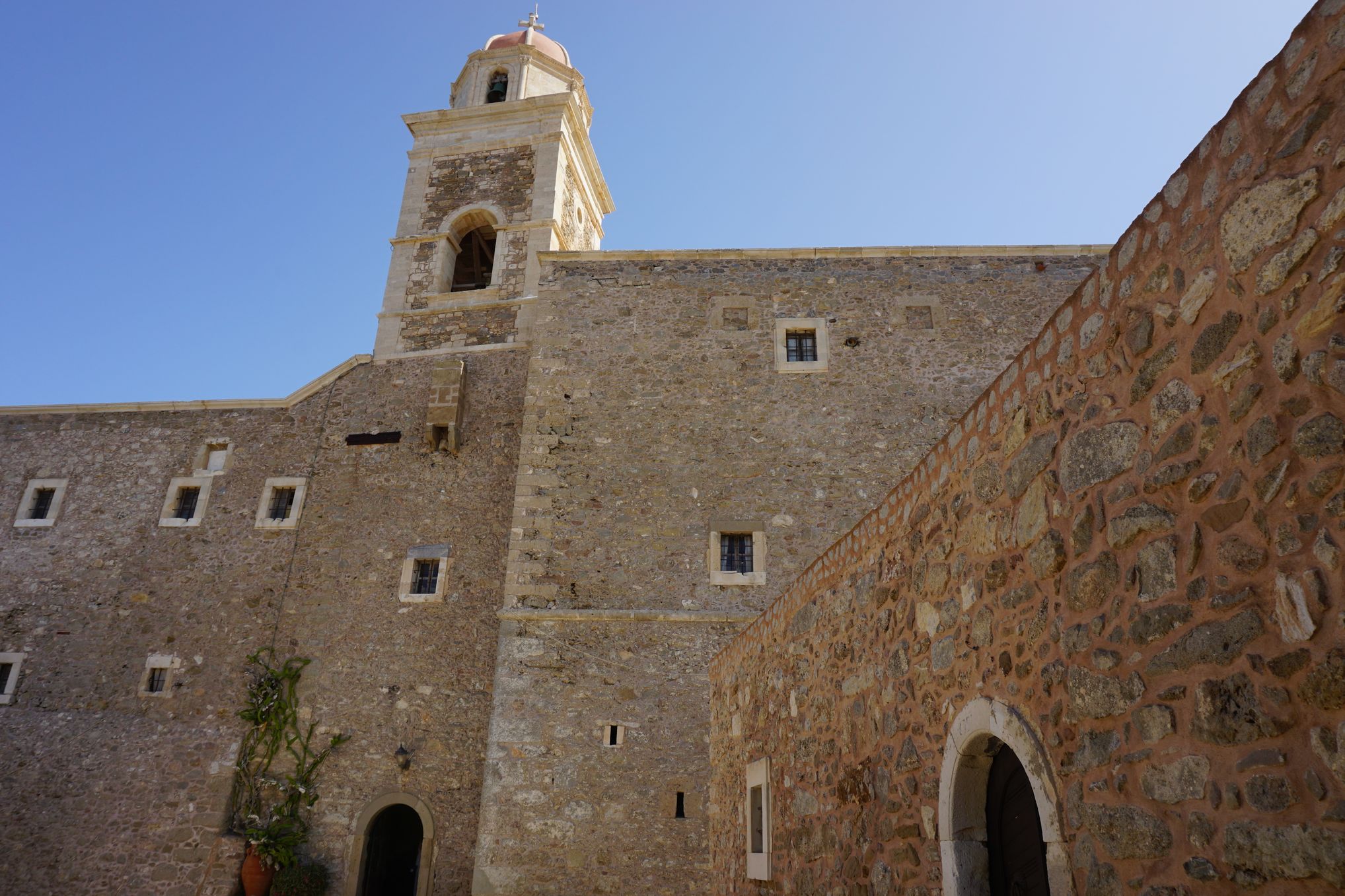 The Toplou monastery (Greek: Μονή Τοπλού) is one of the oldest and most important monasteries in the island of Crete. It was founded in the 15th century and is heavily fortified. The monastery is surrounded by 10 meters high walls and features some exceptional fresco paintings, a collection of Byzantine icons, books and documents, a museum of copperplate engravings and a 33 meters high bell tower.